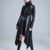 Unleash your inner warrior with this intricately detailed women’s Adara Jacket. Crafted from thick black cotton, this long, asymmetric jacket features a high-collar zipper and pockets for both style and practicality.