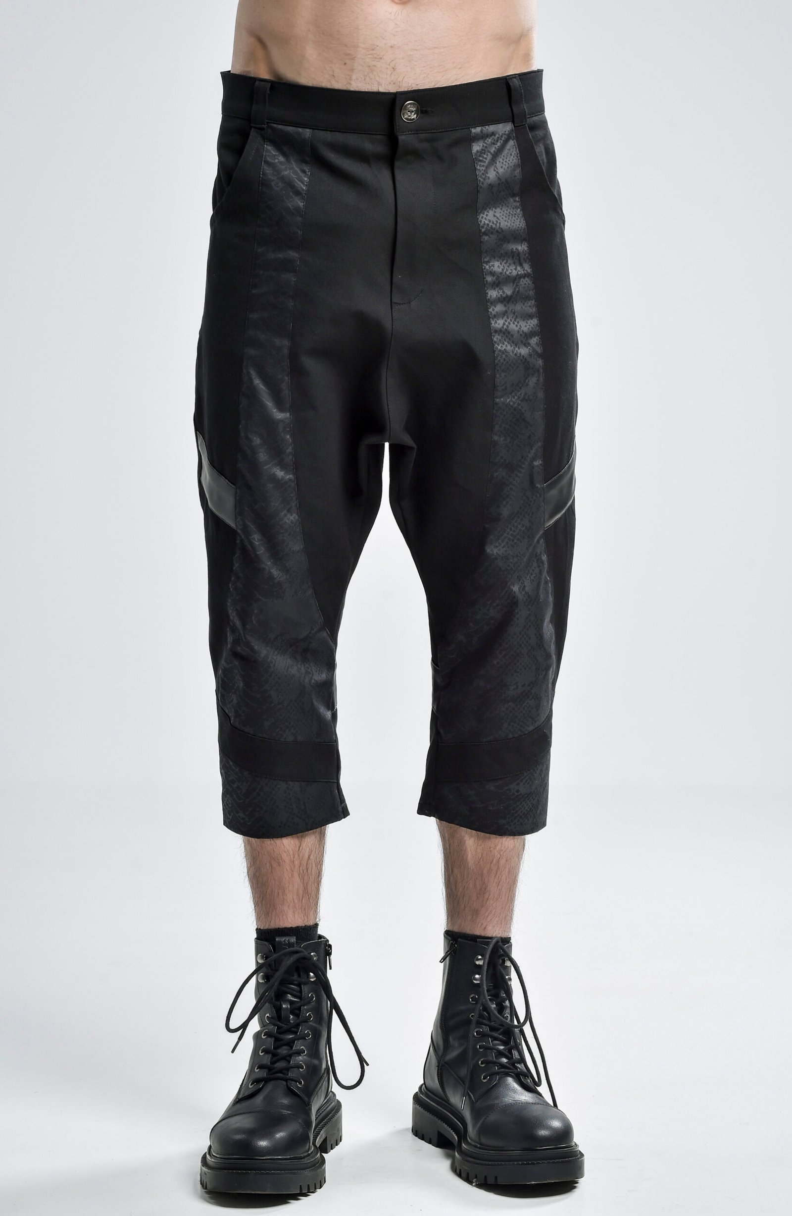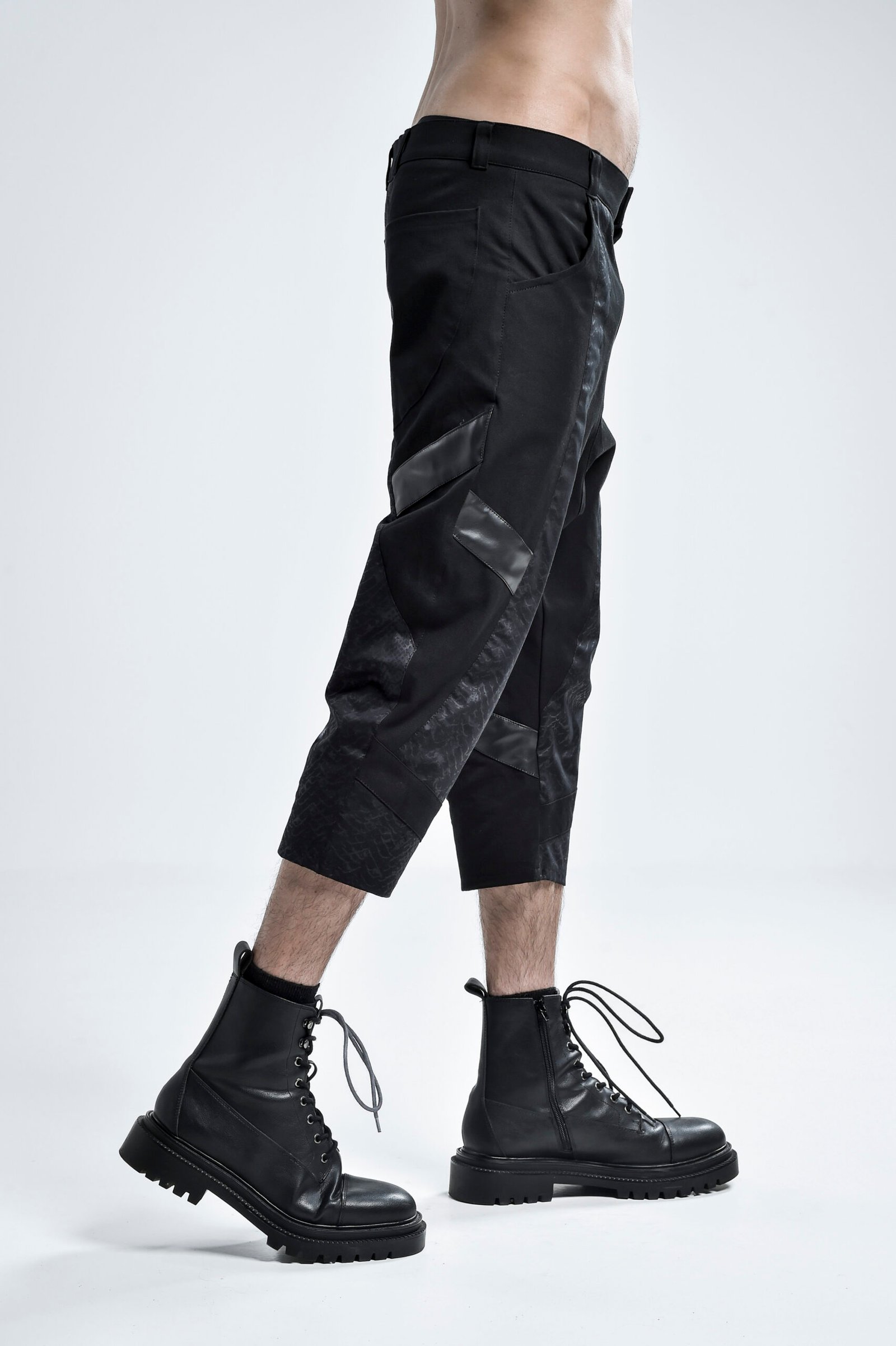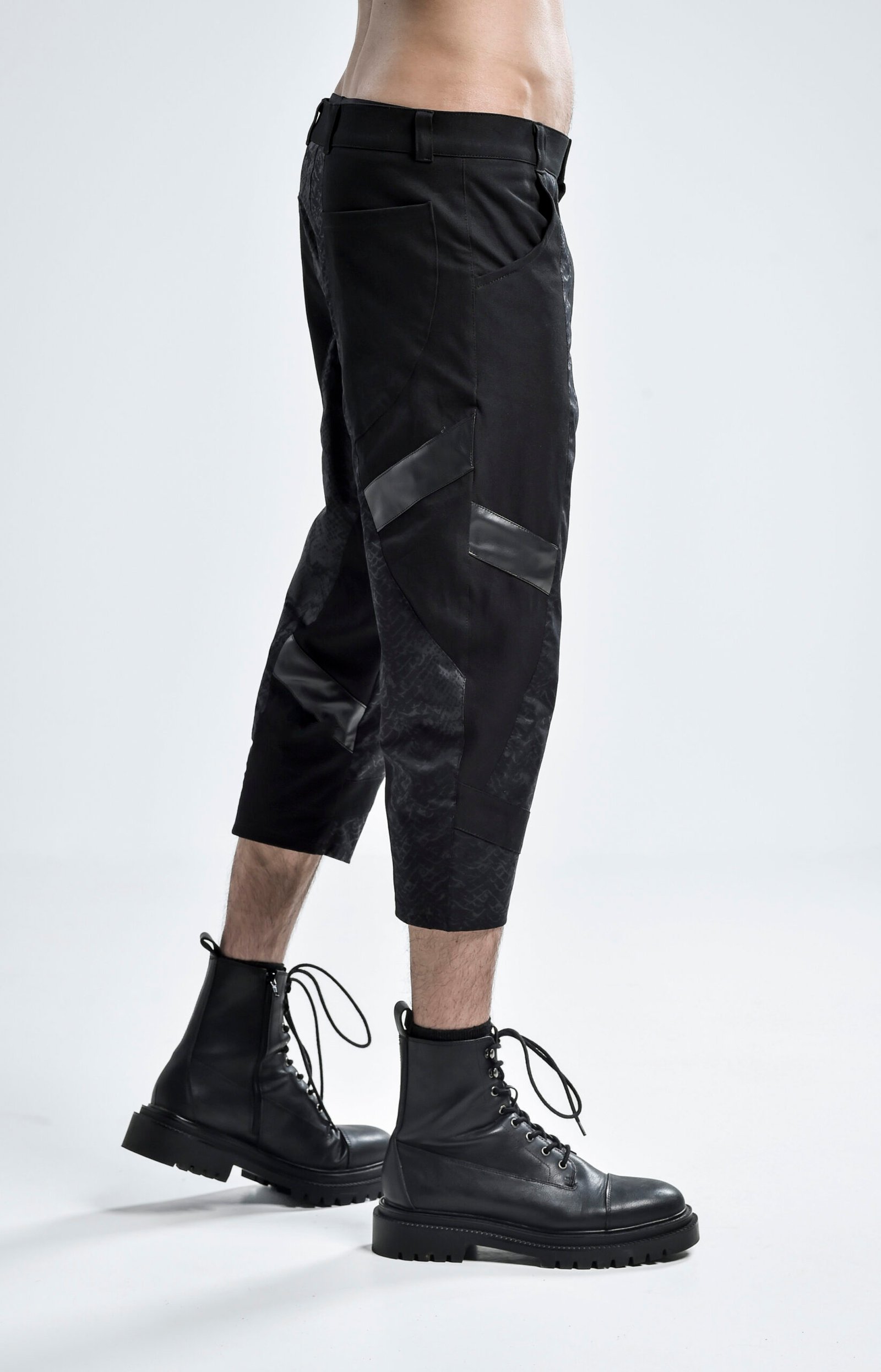 The cropped length enhances the silhouette, making them ideal for styling with boots or statement footwear. Functional pockets and a clean waistband keep the piece practical, while the overall form remains bold and intentional.