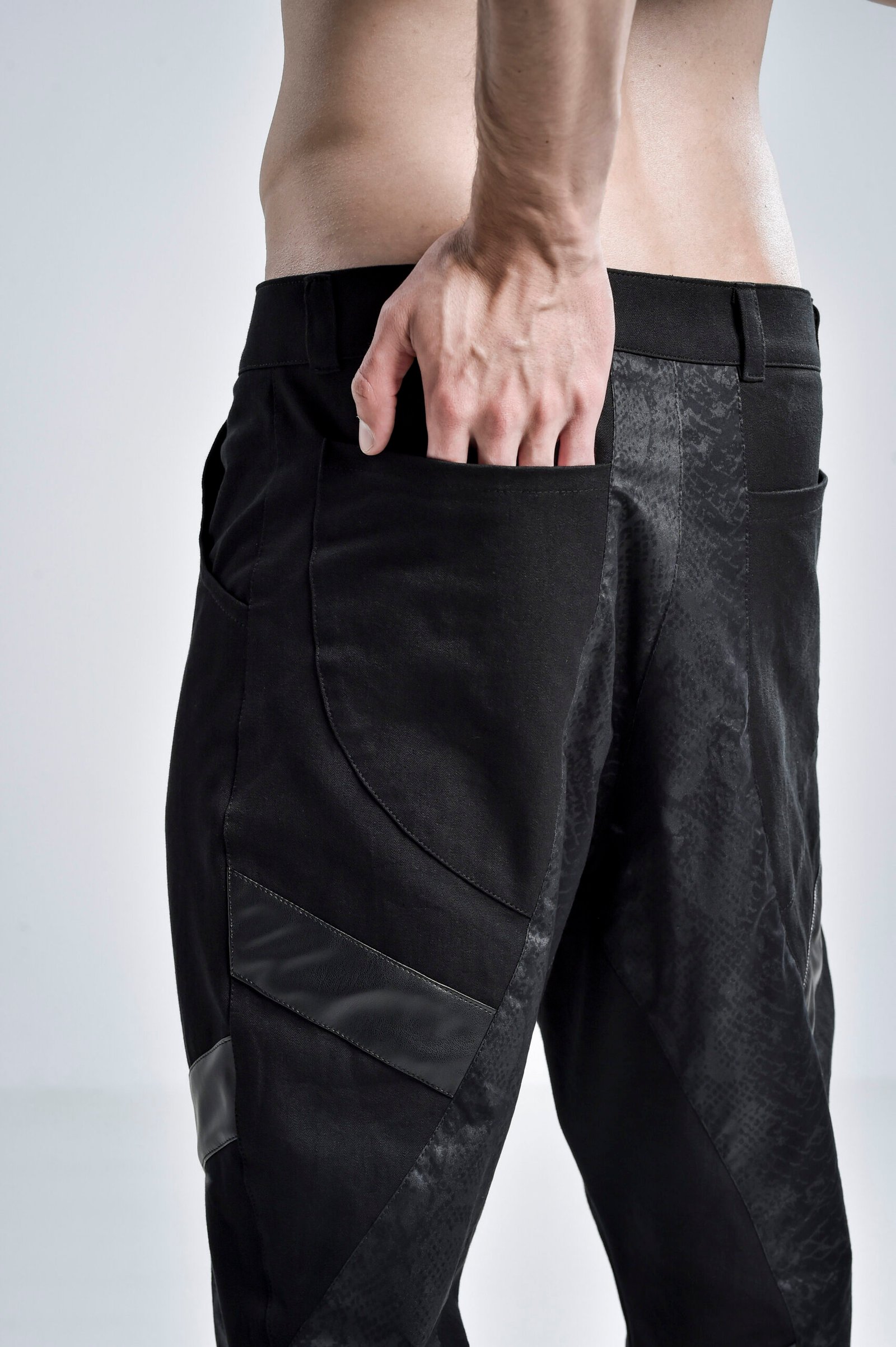 Contrasting textures and diagonal detailing introduce depth and a subtle, technical feel, giving the pants a distinctive identity within black men outfits.