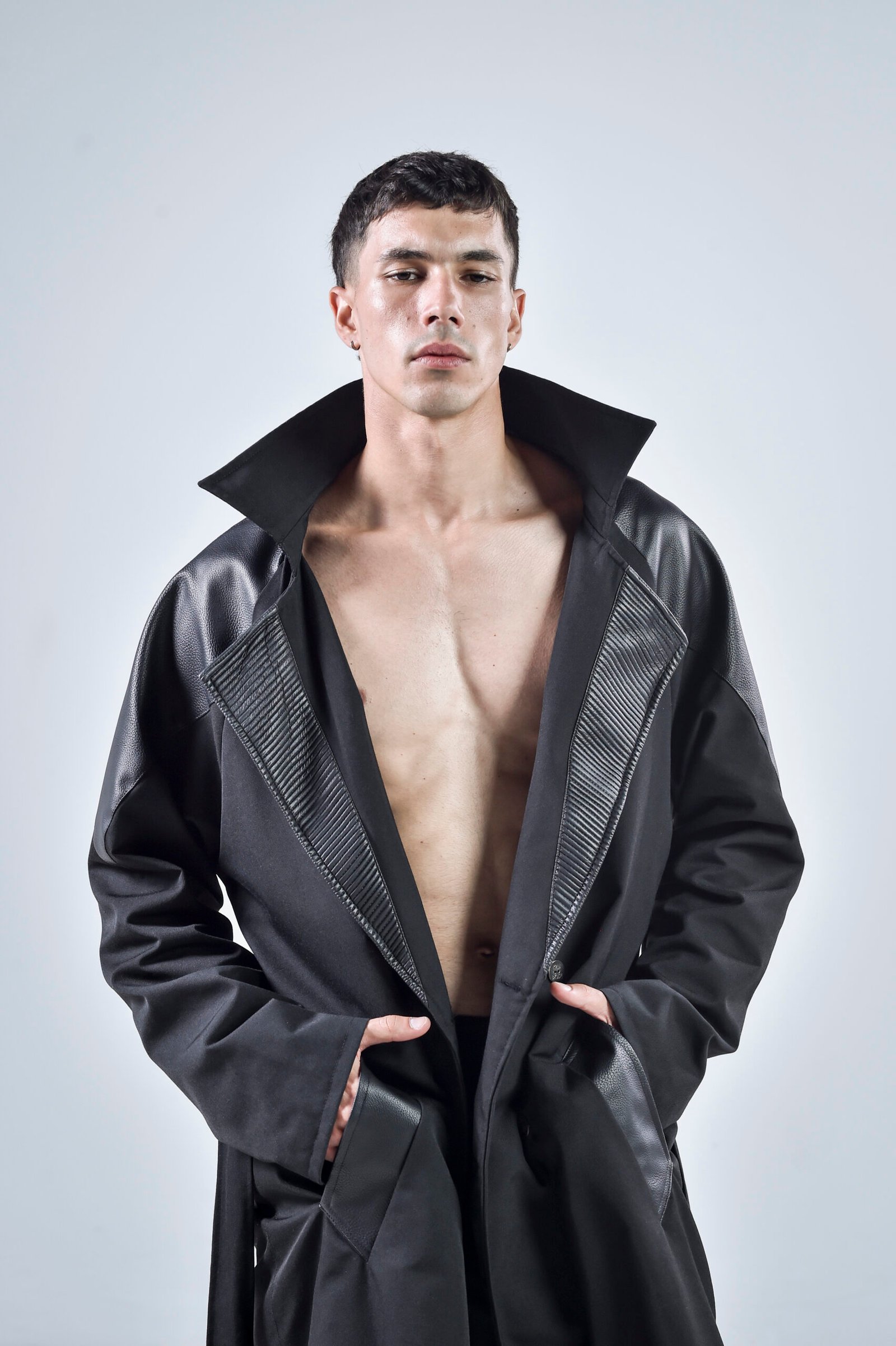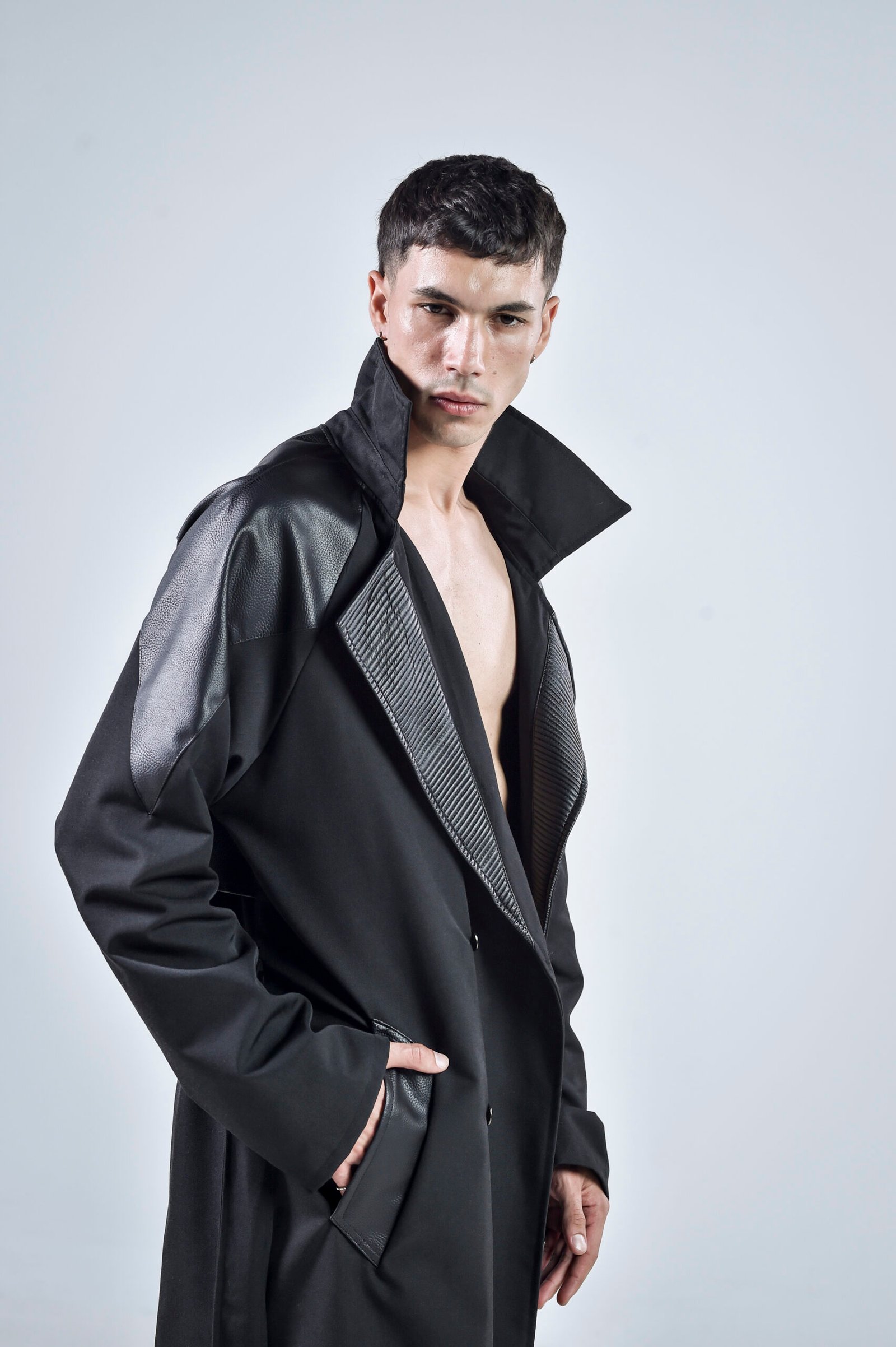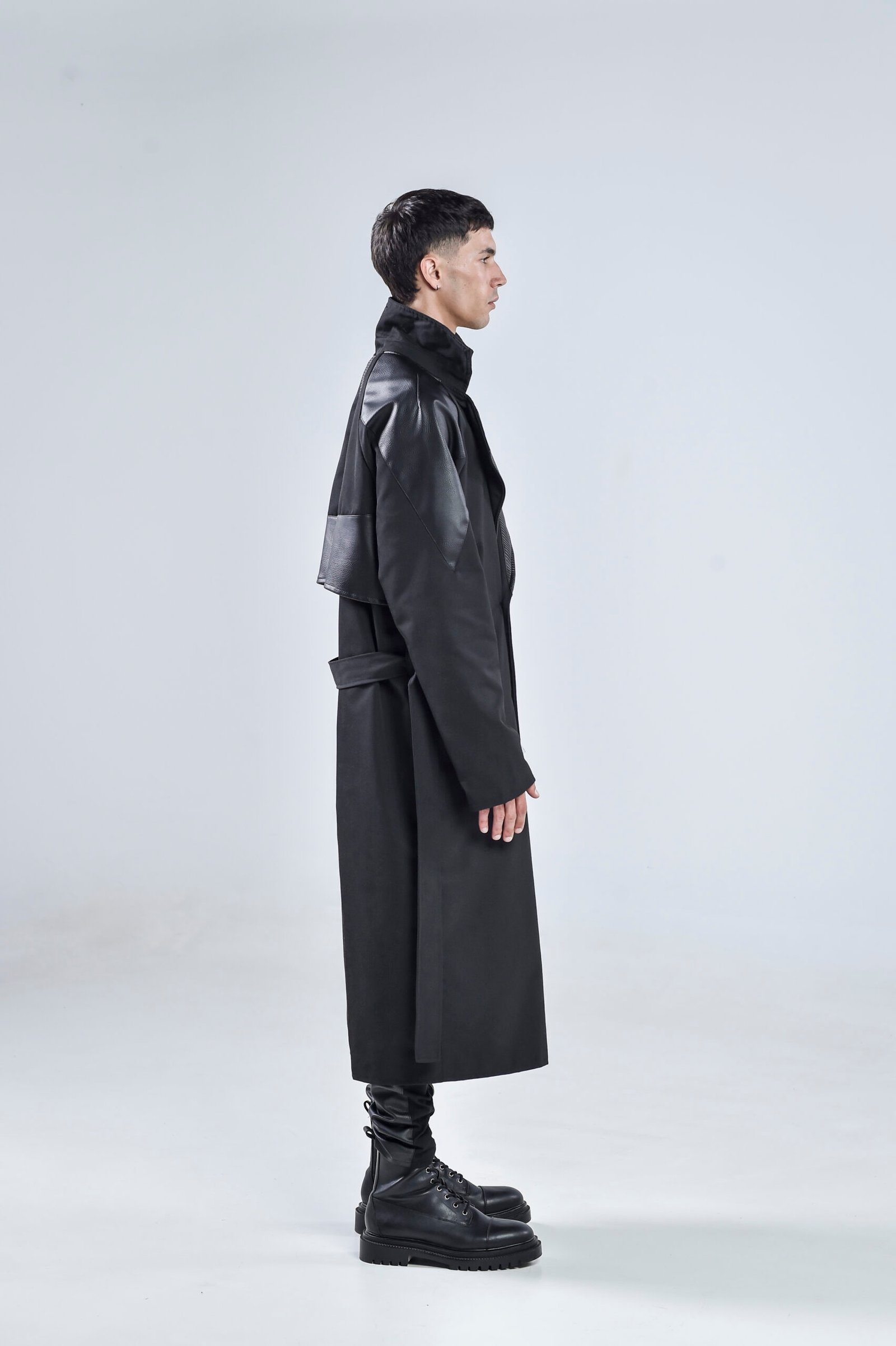 Step into the future of style with the Black Matter Trench Coat, a bold statement piece that blends modern tailoring with dystopian edge. Expertly crafted from premium gabardine fabric and enhanced with faux leather details, this coat redefines contemporary menswear.
