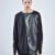 The front and back are accented with matte faux leather panels, cut in sharp geometric lines that create a striking contrast against the draped viscose base. The sleeves mirror this duality — one featuring a sheer mesh insert, and the other constructed entirely from faux leather, embodying perfect balance between texture and tension.