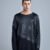 The simple yet striking cuts give it a contemporary feel, while the long asymmetrical faux leather stripe serves as a bold transition between the two fabrics, enhancing its avant-garde fashion appeal. Designed with thumbholes for added functionality, this blouse is perfect for street fashion enthusiasts looking to make a statement.
