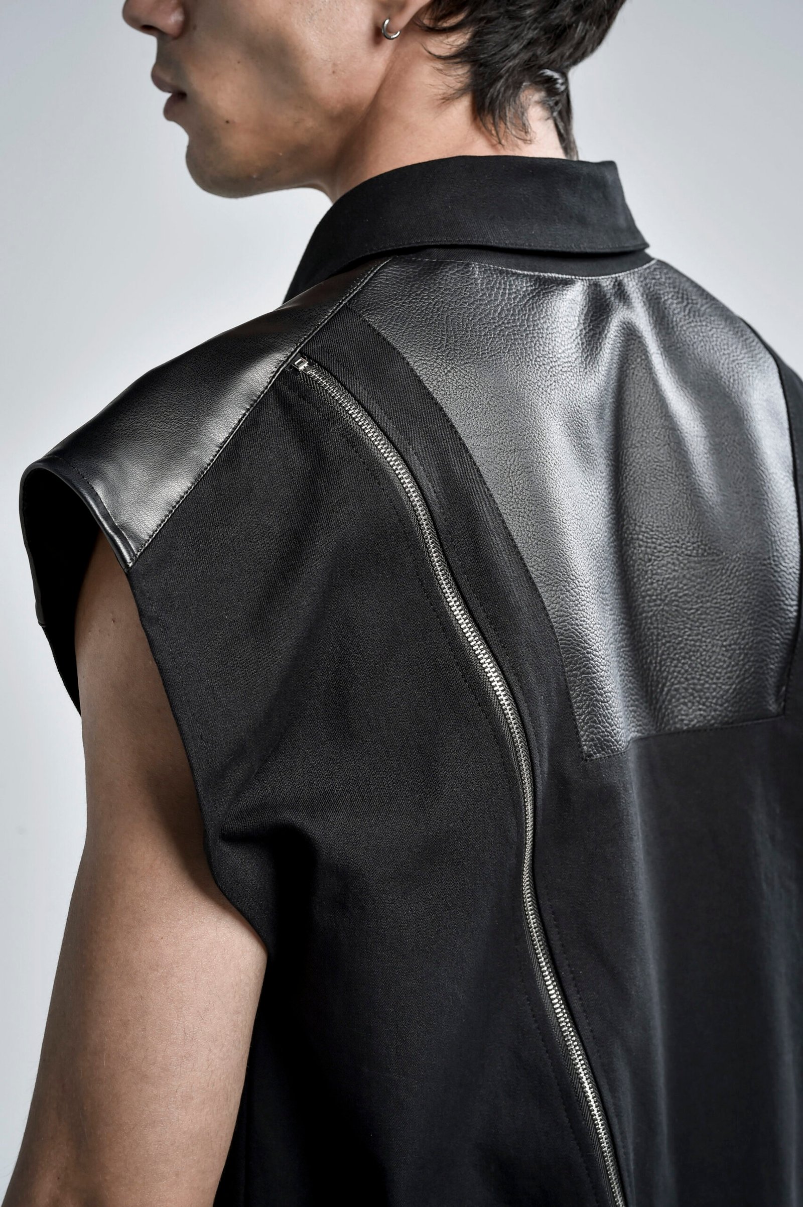 The loose fit creates a powerful, relaxed structure, allowing movement while maintaining a defined shape. Structured shoulders and clean panel lines give the jacket a strong upper form, while contrasting elements introduce depth and a subtle armored feel.