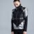 This women’s Iris Jacket embodies a bold cyberpunk and futuristic aesthetic. Designed with a striking high collar and functional pockets, it’s crafted from a dynamic mix of twill and faux leather, blending textures for a sleek, modern look. The silver detailing throughout adds a sharp, cyber edge, enhancing its dystopian appeal. Perfect for those seeking a daring fashion statement, this jacket fuses innovative design with a truly futuristic appeal.