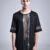 The Lament T-Shirt blends urban vibes with a bold, avant-garde edge, making it a standout piece in men’s street fashion. Designed with a long-length cut and short sleeves, this unique men’s T-shirt features striking transparent mesh details along the edges. A front transparent line and a larger sheer panel on the back, enhanced with faux leather accents, create a dynamic contrast of textures.