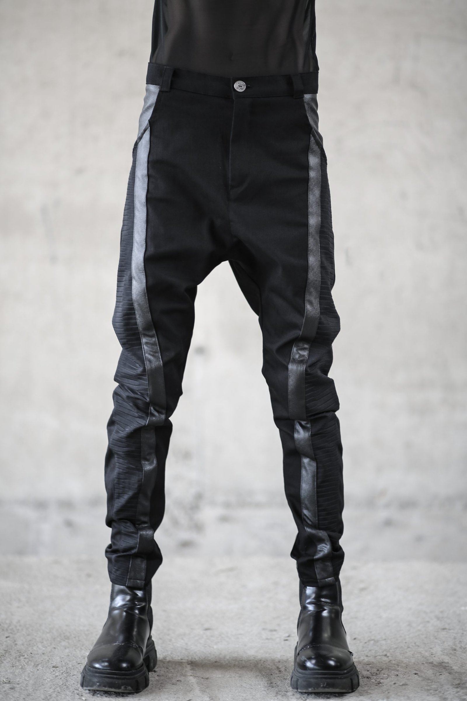Elevate your wardrobe with our super unique Niander Pants, a striking fusion of style and innovation that embodies the spirit of dystopian, futuristic, and avant-garde fashion. These meticulously designed pants are unlike anything you’ve seen before, with a bold combination of two different fabrics and faux leather lines on both the front and back, creating a truly distinctive look.