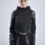 Designed for movement and versatility, the Umbra Pullover features a high sculpted collar, thumbholes for comfort, and a dual-direction back zipper that opens from both sides—creating a customizable, industrial-inspired look. The textured front panel and matte-gloss contrast add depth and attitude, making it a statement piece for all-black fashion and urban streetwear.