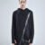 The asymmetric cut enhances its sculptural silhouette, while pinch stitch lines add depth and texture across the front and back panels. A relaxed hood amplifies the futuristic edge, offering both comfort and bold character. The long sleeves feature thumbholes, adding functionality and a streamlined look that embodies cyberpunk precision.