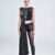 Crafted with a plain viscose base, the tunic offers a smooth, comfortable feel while adding a subtle shine to elevate the design. Mesh fabric accents introduce an element of transparency, creating a layered, bold effect. Faux leather lines bring structured elements, adding to the piece’s modern, futuristic aesthetic.