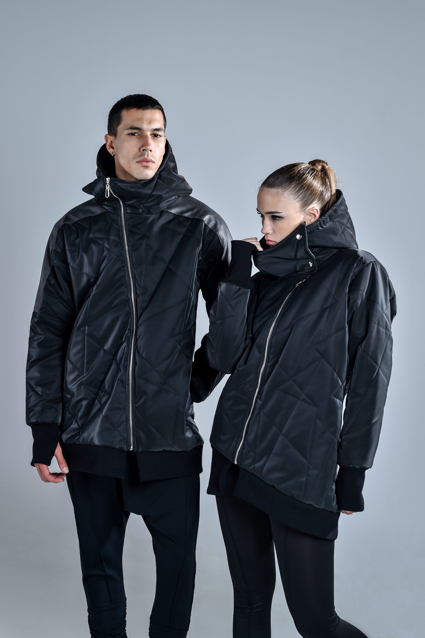 Stay warm and stylish this winter with our men’s puffer Avalon Jacket, designed for the coldest days. Featuring a waterproof outer layer, this jacket is crafted with a cool geometric pattern and gray faux leather shoulder details for an edgy look. With a big comfy hood, high collar, and thumbholes, it offers ultimate comfort and warmth. The functional pockets add practicality, while the design captures the essence of street fashion and urban fashion. Perfect for any winter adventure, this jacket blends fashion with functionality.