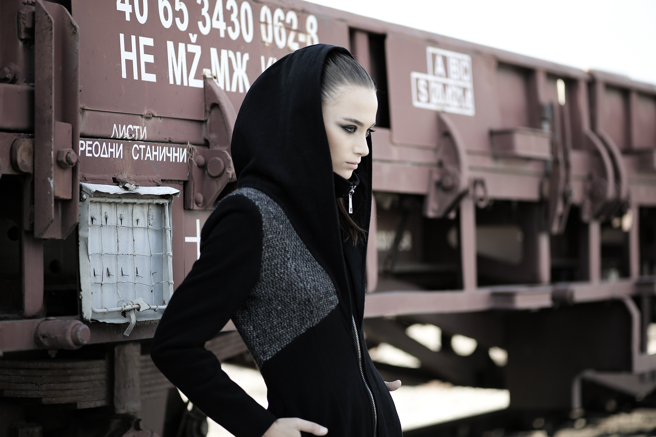 Black coat made of quality blend wool felt in 2 different patterns, with lining. No pockets as it’s slim fit coat.