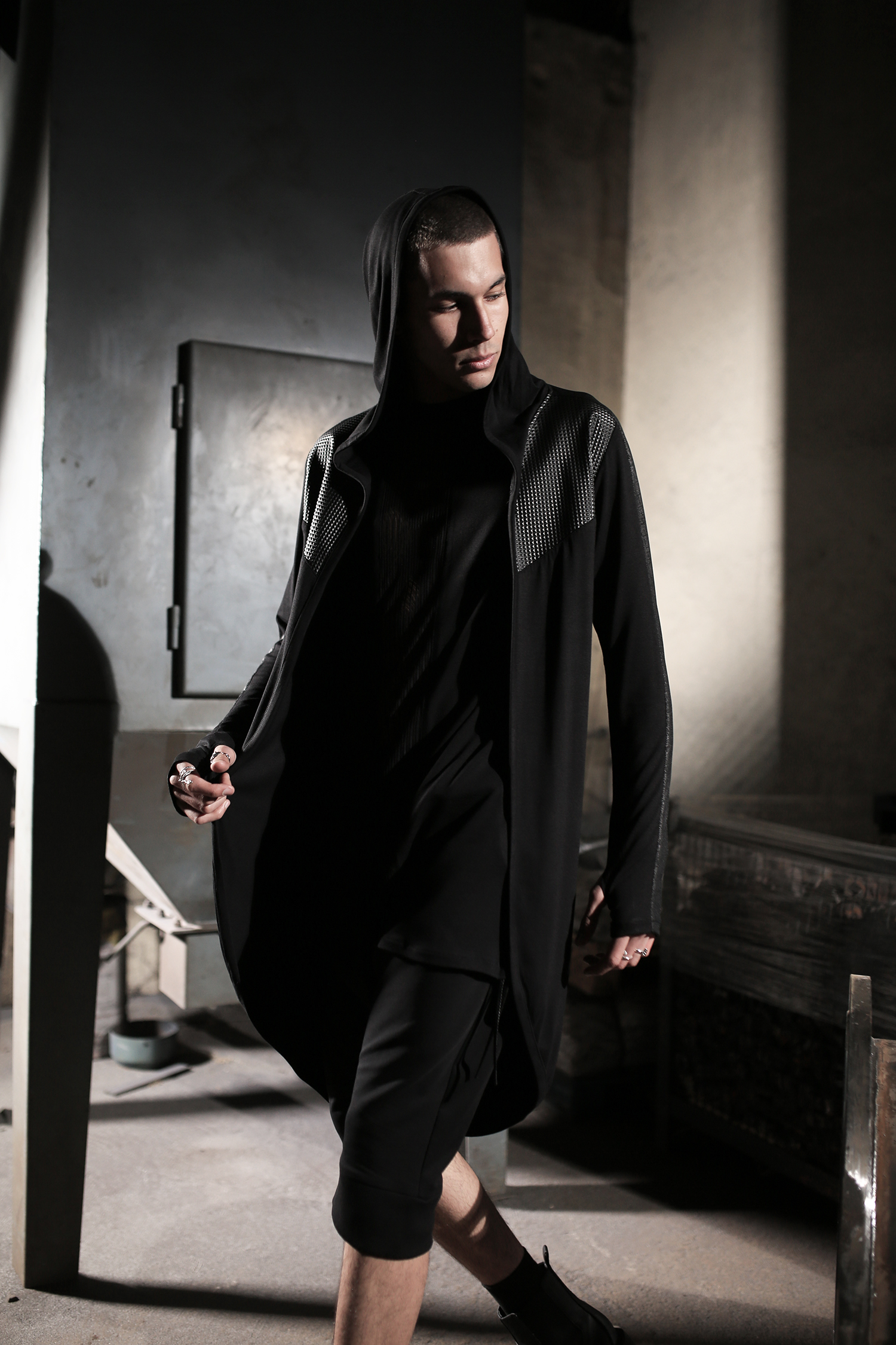 Asymmetric tunic made of high quality and soft thick viscose designed with faux leather. With pockets.